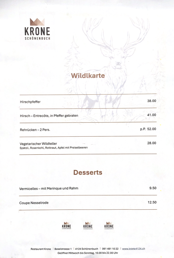 Reservationen nehmen wir gerne über willkommen@krone4124.ch oder über 061 481 10 22 entgegen.